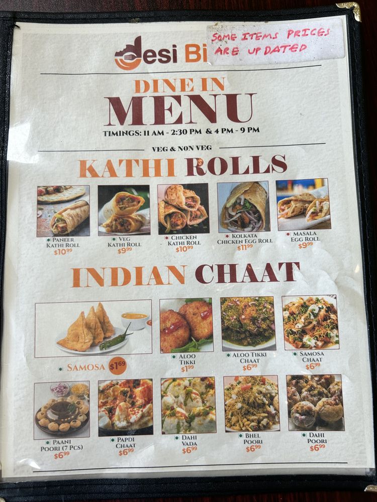 Wrapped in a flaky paratha with egg, tender chicken pieces, onions, and choice of spice level from kids friendly to extra hot.