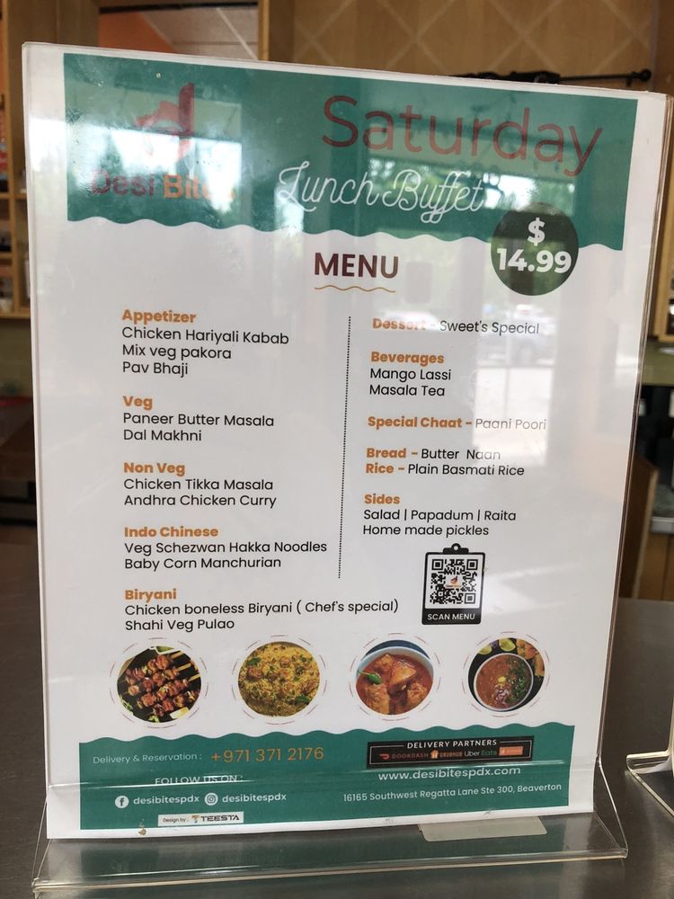 Introducing Desi Bites, an Indian restaurant located at 16165 SW Regatta Ln Ste 300, Beaverton, OR 97006. This casual eatery offers delivery, takeout, and outdoor seating, making it a convenient choice for a meal on-the-go. With plenty of vegetarian options available, Desi Bites caters to all dietary preferences. The private lot parking and free Wi-Fi further enhance the dining experience here. The phone number to place orders or inquiries is (971) 371-2176. Explore the flavors of India at Desi Bites and savor a variety of authentic dishes that will surely tickle your taste buds. Don't miss out on this gem in Beaverton for a taste of delicious Indian cuisine.